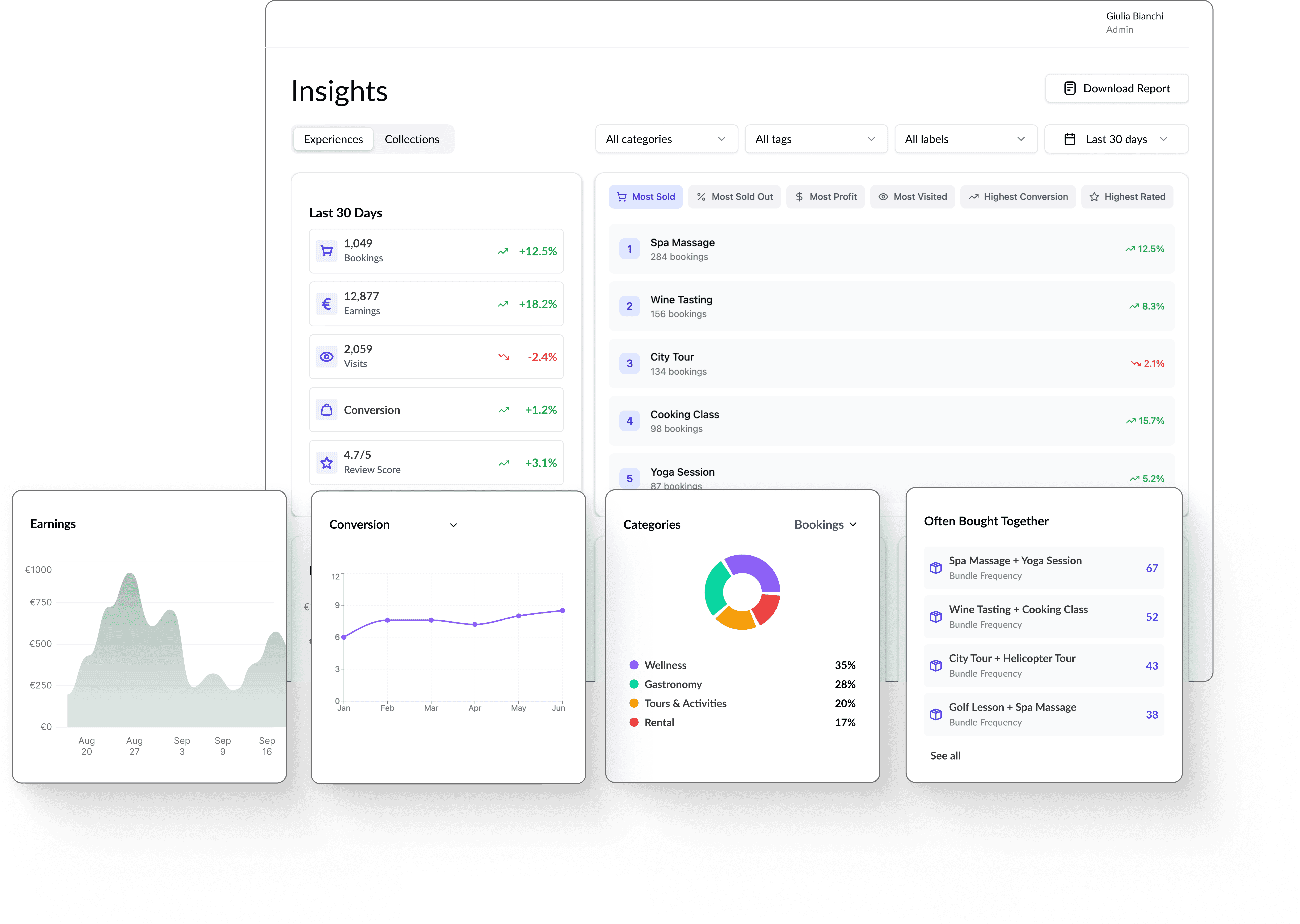 Manage offering, bookings and reports in one place.